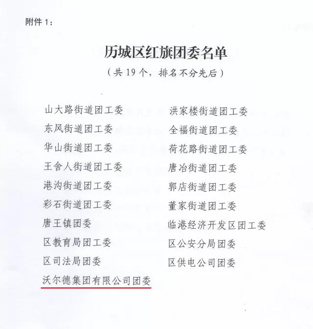 熱烈祝賀沃爾德集團團委榮獲歷城團區委2017年度五四系列表彰