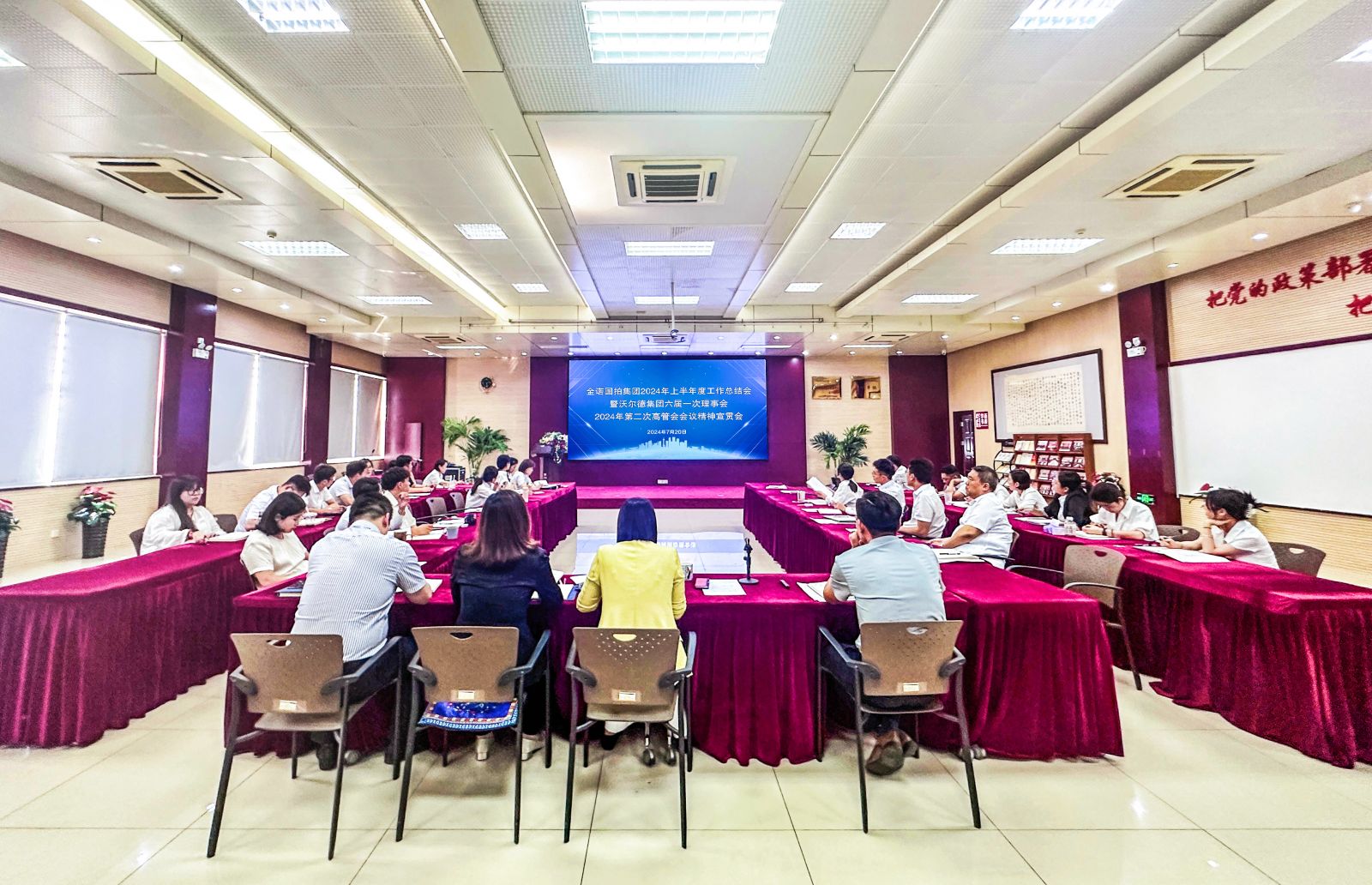 7月20日,金諾國拍集團(tuán)召開2024年上半年度工作總結(jié)會(huì)暨沃爾德集團(tuán)六屆一次理事會(huì)、2024年第二次高管會(huì)會(huì)議精神宣貫會(huì)。會(huì)議的召開旨在全面總結(jié)上半年的工作成果,對(duì)下半年的工作任務(wù)進(jìn)行詳細(xì)的規(guī)劃和部署,學(xué)習(xí)傳達(dá)沃爾德集團(tuán)六屆一次理事會(huì)、2024年第二次高管會(huì)會(huì)議精神。沃爾德集團(tuán)總裁、金諾國拍集團(tuán)董事長(zhǎng)商雪梅,金諾國拍集團(tuán)總裁位琳及公司全體駐濟(jì)管理人員參會(huì),總裁位琳主持會(huì)議。